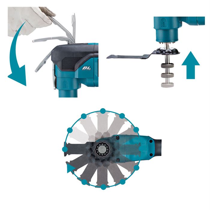 Rezný nástroj je možné namontovať na vreteno v 12 rôznych pozíciách, aby sa prispôsobila pracovná poloha v rôznych situáciách, najmä pri rezaní na ťažko dostupných miestach.