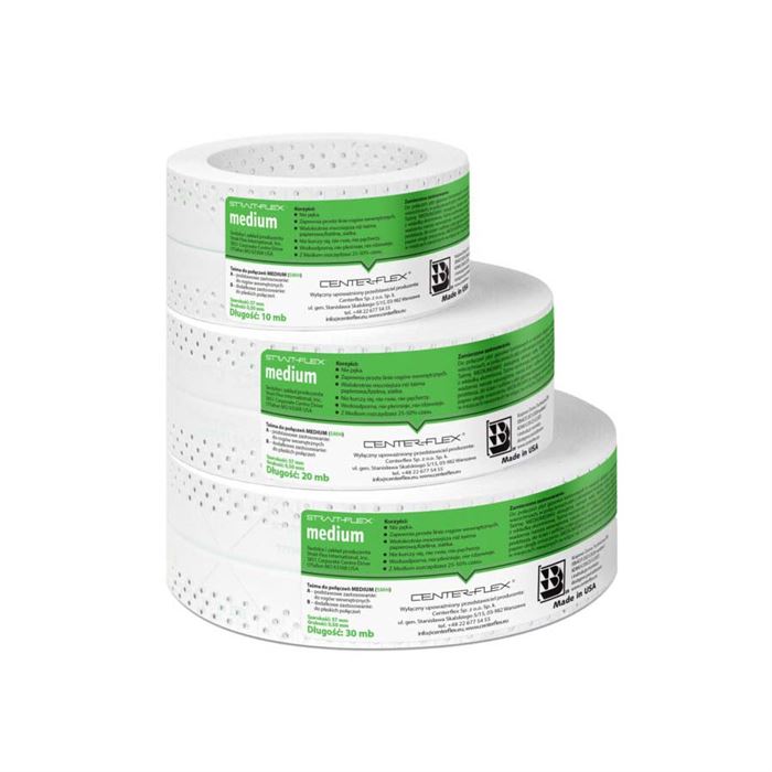 Páska MEDIUM je hrubšia a pevnejšia ako TUFF-TAPE, navrhnutá špeciálne na dokončovanie vnútorných rohov, kde sa spájajú sadrokartónové dosky.