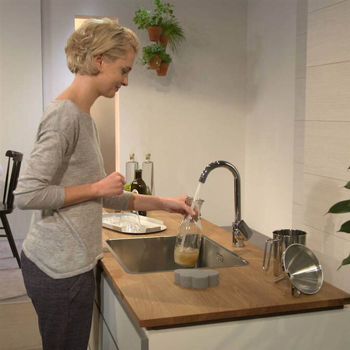 Páková stojančeková drezová batéria s otočným ramienkom. V chrómovom prevedení. Výška batérie je 33,2 cm. Ramienko je vo výške 25,5 cm.TECHNICKÉ PARAMETRE:
