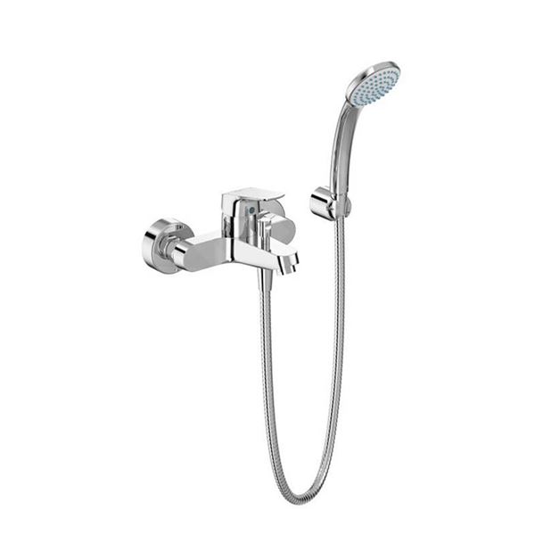 Exponovaná vaňová a sprchová batéria Ceraflex s mosadzným odlievaným telom, automatickým prepínačom a 38 mm kartušou FirmaFlow® ISI s obmedzovačom teplej vody, s technológiou Click. Používa kovovú rukoväť s červenou a modrou farbou - vytlačená na rukoväti, S-konektory, perlátor Perlator a spätný ventil. S príslušenstvom: ručná sprcha Idealrain 1F, sprchová hadica 1500 mm, pevná nástenná konzola.Prvky balenia Vaňová-sprchová batéria + príslušenstvo (kovová sprchová hadica 1500 mm, sprchová hlavica priemer 80 mm, pevný držiak sprchy)TECHNICKÉ PARAMETRE: