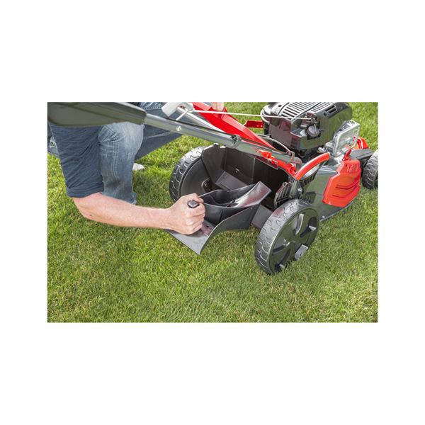 So šírkou záberu 46 cm zaisťuje benzínová kosačka Comfort 46.0 SP-B rýchly postup aj v stredne veľkých záhradách (do 1100 m²). Výška kosenia sa nastavuje centrálne až v 7 krokoch od 30 mm do 80 mm. Kosačka je poháňaná motorom Briggs & Stratton 500 E s výkonom 2,0 kW. Vďaka 1-rýchlostnému pohonu kolies a XXL kolieskam s hladkým chodom je pohyb po záhrade bez námahy. Funkcia 4IN1 ponúka kosenie, zber, mulčovanie a bočné vyhadzovanie trávnika.Ergonomicky tvarovaná rukoväť zvyšuje komfort pri práci. Pokosená tráva sa dostane do zadnej časti 60 l koša na zber trávy s indikátorom naplnenia cez mimoriadne vysoký kryt z oceľového plechu s technológiou MaxAirflow, čo znamená, že je naplnený až po vrch, a preto ho treba menej často vyprázdňovať.