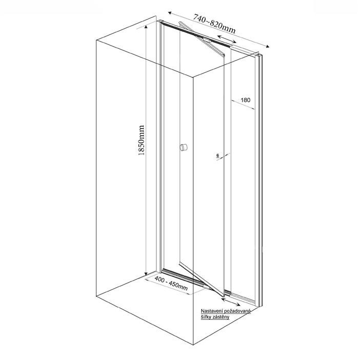 Dvere sprchové AQUALINE AMICO 104-122 × 185 cm, biely rám, číre