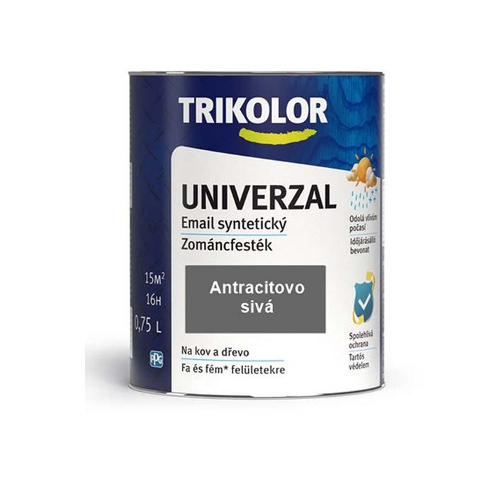 TRIKOLOR UNIVERZAL – syntetický univerzálny email kovových a drevených povrchov v interiéri aj exteriériTRIKOLOR UNIVERZAL je kvalitná syntetická vrchná náterová hmota určená na ochranné aj dekoratívne nátery kovových a drevených povrchov v interiéri aj exteriéri. Vďaka svojej vynikajúcej priľnavosti k podkladu a hladkému výslednému povrchu je ideálnou voľbou pre vrchné lesklé nátery napríklad na ploty, odkvapy, dvere, zárubne, obklady, drobné kovové konštrukcie a iné.Vyznačuje sa zníženým obsahom rozpúšťadiel, jednoduchou aplikáciou a výbornou odolnosťou voči poveternostným vplyvom. Nie je vhodná na povrchy, ktoré prichádzajú do priameho kontaktu s potravinami, krmivami, pitnou vodou alebo na nátery detského nábytku a hračiek.VÝHODY PRODUKTU: