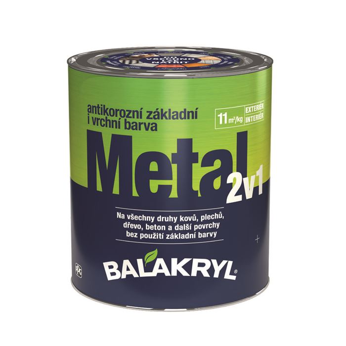 BALAKRYL METAL 2v1 základná a vrchná farba na kov je jednozložková antikorózna akrylátová vodou riediteľná farba pre vonkajšie aj vnútorné použitie s vynikajúcou priľnavosťou na rôzne typy povrchu. Vytvára vysoko pružný, extrémne odolný a hodvábne matný povrch s dlhodobou životnosťou.Vďaka špeciálnemu zloženiu sa po ľahkom očistení môže aplikovať priamo na hrdzu bez použitia základného náteru. Určená najmä na nové, ale aj obnovujúce nátery pozinkovaného plechu, ocele alebo hliníka. Môžete ju použiť aj na nátery nepochôdzneho betónu, neglazovanej keramiky, medi, dreva, cementovláknitých a drevotrieskových dosiek a ďalších stavebných materiálov. Kvalitatívne mimoriadne vhodná aj pre priemyselné aplikácie, najmä pre výrobcov strešných krytín a iných klampiarskych výrobkov.Výhody :