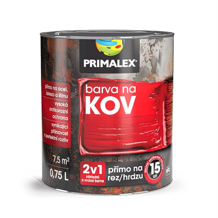 Primalex Farba na kov 2v1 je určená na priame ochranné nátery kovových povrchov v interiéri aj exteriéri bez potreby základnej farby. Je ideálnym riešením na nové aj renovačné nátery, vrátane mierne skorodovaných povrchov.Vďaka vysokej priľnavosti k podkladu a účinným antikoróznym vlastnostiam poskytuje dlhodobú ochranu kovu až na 15 rokov. Výborný rozliv farby zabezpečuje hladký a estetický finálny vzhľad bez stôp po nástrojoch.Hlavné výhody: