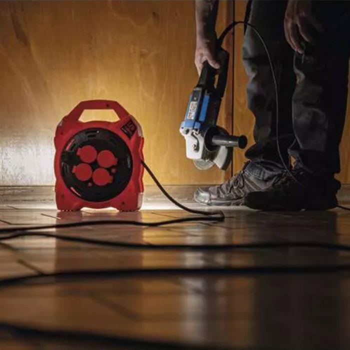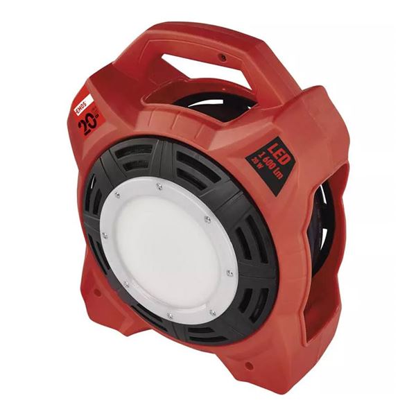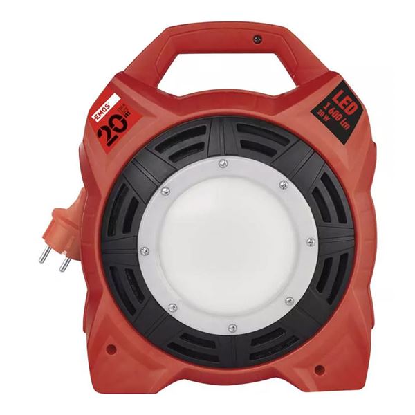 Vonkajší predlžovací kábel na bubne 20 m, 4 zásuvky, guma, 230 V, 1,5 mm2 s reflektorom LED