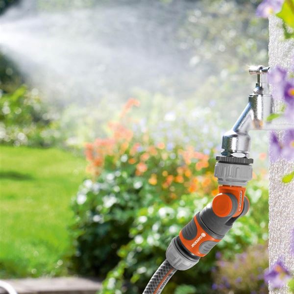 Zabraňuje zalamovaniu a krúteniu hadice na kohútiku v dôsledku otáčania a naklápania prípojky.oda môže bez prekážok prúdiť a hadica sa nepoškodzuje. Táto prípojka sa dá ideálne použiť i pre vozíky na hadicu. Výkyvná prípojka je vhodná pre vodovodné kohútiky so závitom 33.3 mm (G 1") a 26.5 mm (G 3/4").