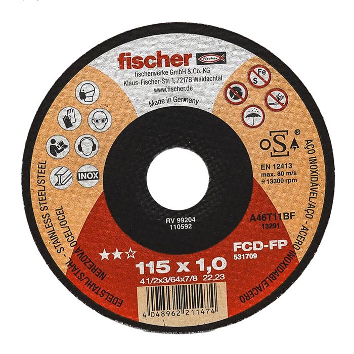 Rezný kotúč Fischer FCD-FP 115 × 1,0 × 22,23 plusRezný kotúč fischer FCD-FP je určený na rezanie tenkostenných rúrok alebo rúrok z uhlíkovej a nerezovej ocele. Rýchly a čistý rez s minimálnym vznikom otrepov a iskrenia je vhodný pre každodenné použitie vdielni a aj na stavbe. Malá úroveň vibrácií a kvalitné spojivo sú zárukou dlhej životnosti a vysokého výkonu nástroja.