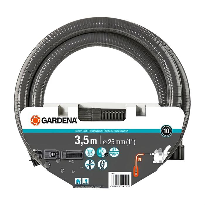 Kompletná, vystužená špirálová hadica odolná voči podtlaku, pripravená na pripojenie k čerpadlu. So sacím filtrom pre ochranu čerpadla proti poškodeniu nečistotami, a so spätnou klapkou pre kratšie časy opätovného nasávania. Hadica má dĺžku 3,5 m, priemer 25 mm (1") a je vhodná pre čerpadlá s vonkajším závitom 33,3 mm (G 1).