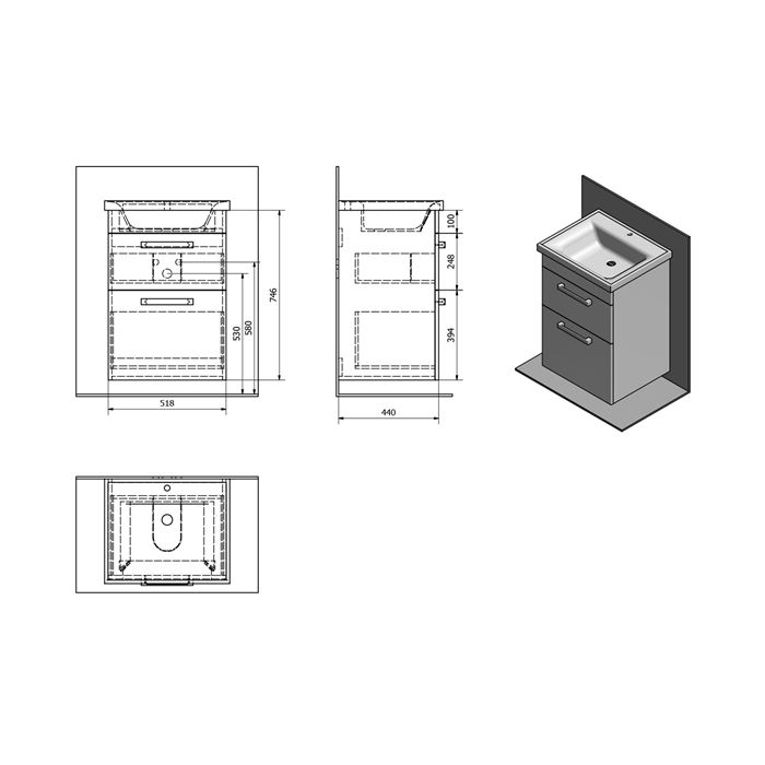 Skrinka umývadlová SAPHO POLY 51,8 × 74,6 × 44 cm, biela