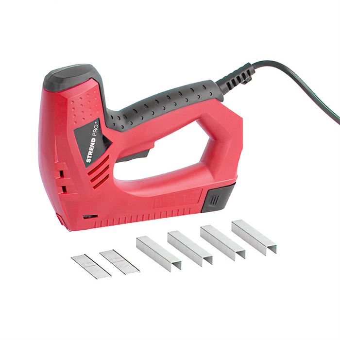 Elektrická sponkovačka Strend Pro je šikovný pomocník pre každého domáceho majstra ako aj do tvorivej dielne. Je ideálna pre čalúnenie nábytku, na dekorovanie, upevňovanie tenkých drevených materiálov, na renovačné práce. Sponkovačka má 2 funkcie - nastreľovanie klincov a zošívanie sponkami. Je vybavená ukazovateľom stavu naplnenia a bezpečnostnou poistkou, ktorá chráni používateľa pred samovoľným vystrelením. Kadencia spôn/klincov za minútu: 30. Vhodná pre sponky typu 53 od 8-14 mm a klince typu 8 15 mm.