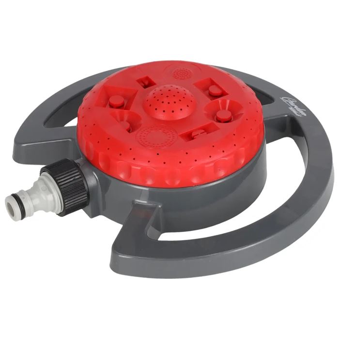 Vďaka veľkej základni je zavlažovač stabilný a neprevráti sa ani pri vyššom tlaku vody. Pripojenie k záhradnej hadici je jednoduché prostredníctvom 1/2" spojky. Odolné telo z kvalitného plastu ABS a PP zaručuje dlhú životnosť a spoľahlivú prevádzku.