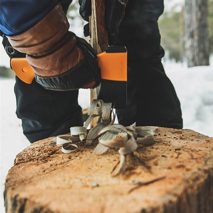 Špecifikácie sekier Fiskars X:Čepeľ sekery Fiskars X je vyrobená zo špeciálnej vysoko kvalitnej uhlíkovej ocele (kované v zápustke), ktorá sa ľahko brúsi. Ostrie je precízne vybrúsené do konvexného tvaru, aby bolo menej citlivé na poškodenie. Zaoblené okraje rozšíreného klinu štiepacie sekery uľahčujú vytiahnutie sekery zovreté vo polena. Telo čepele je vyrobené z ocele o tvrdosti 48HRC, ostrie z ocele o tvrdosti 55HRC. Kombinácia dvoch rôznych tvrdosťou čepele optimalizuje tuhosť a trvanlivosť ostria. Povrchová úprava PTFE znižuje trenie o 25% a chráni čepeľ pred koróziou. Ťažisko sekery je veľmi blízko čepele, čo zvyšuje účinnosť pri sekaní. Sekera je perfektne vyvážená pre presné sekanie.Porisko sekery Fiskars X je vyrobené z materiálu FibreComp. Je vystužené sklenými vláknami, vďaka čomu je pevné, trvanlivé a ľahké. Použitý materiál nereaguje na zmeny počasia, má rovnaké vlastnosti za sucha i za vlhka. Časť poriska slúžiace na uchopenie sekery je z mäkkého plastu. Vďaka novej technológii dovoľujúci kombinovať tvrdé jadro s mäkkým povrchom sú nárazy maximálne absorbované, sekera pohodlne drží a nešmýka. Vykĺznutiu sekery z ruky bráni aj fakt, že je koniec poriska rozšírený a potiahnutý elastomérov. Čepeľ nikdy nespadne z poriska, pretože je pevne obklopená plastom už pri výrobe v špeciálnom striekacím lisu.Plastové puzdro na sekeru Fiskars X v elegantnom dizajne jednak chráni ostrie pri prenášaní a skladovaní, ale tiež aj zvyšuje bezpečnosť pri manipulácii. Puzdro je opatrené držadlom pre komfortnejšie prenášanie alebo na zavesenie. Bezpečný zámok, ktorý sa ľahko otvára aj zatvára zabraňuje skĺznutiu obale z čepele sekery.
