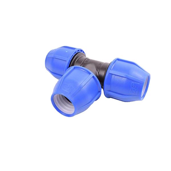 Plastový T-Kus pre PE potrubia s priemerom 25 mm. Tlaková rada PN 16.