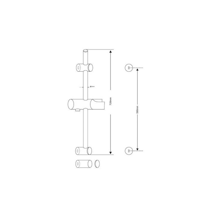 Plastová sprchová tyč s posuvným plastovým držiakom ručnej sprchy. Rozstup úchytov na stenu je nastaviteľný, jedna príchytka je posuvná.
