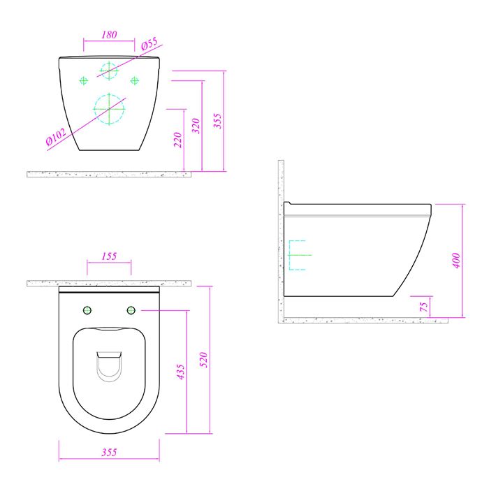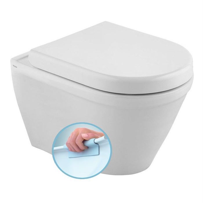 Rimless (NoRim) predstavuje toaletu bez klasického oplachového kruhu. Hladký vnútorný povrch WC misy nemá dutiny ani záhyby, čo výrazne uľahčuje čistenie. Oplachová voda prúdi rozdeľovačom iba zo zadnej časti misy a vďaka špeciálnemu tvaru keramiky dôkladne opláchne celý vnútorný priestor. Výsledkom je vyššia hygiena a jednoduchšia údržba WC.
