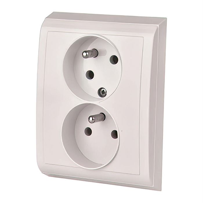 Zásuvka dvojitá pootočená Praktik 4fn15088.901, biela